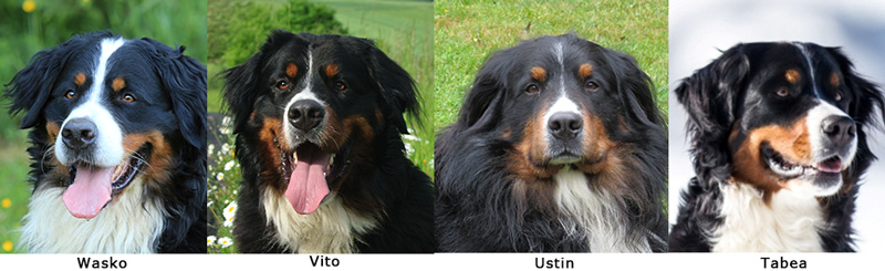 An seinem 5. Geburtstag hat Urs seine erste Rettungshundeprüfung bestanden und dabei Muter und Geschwister getroffen: v.l.n.r. Urs, Ulina, Gina, Ustin.