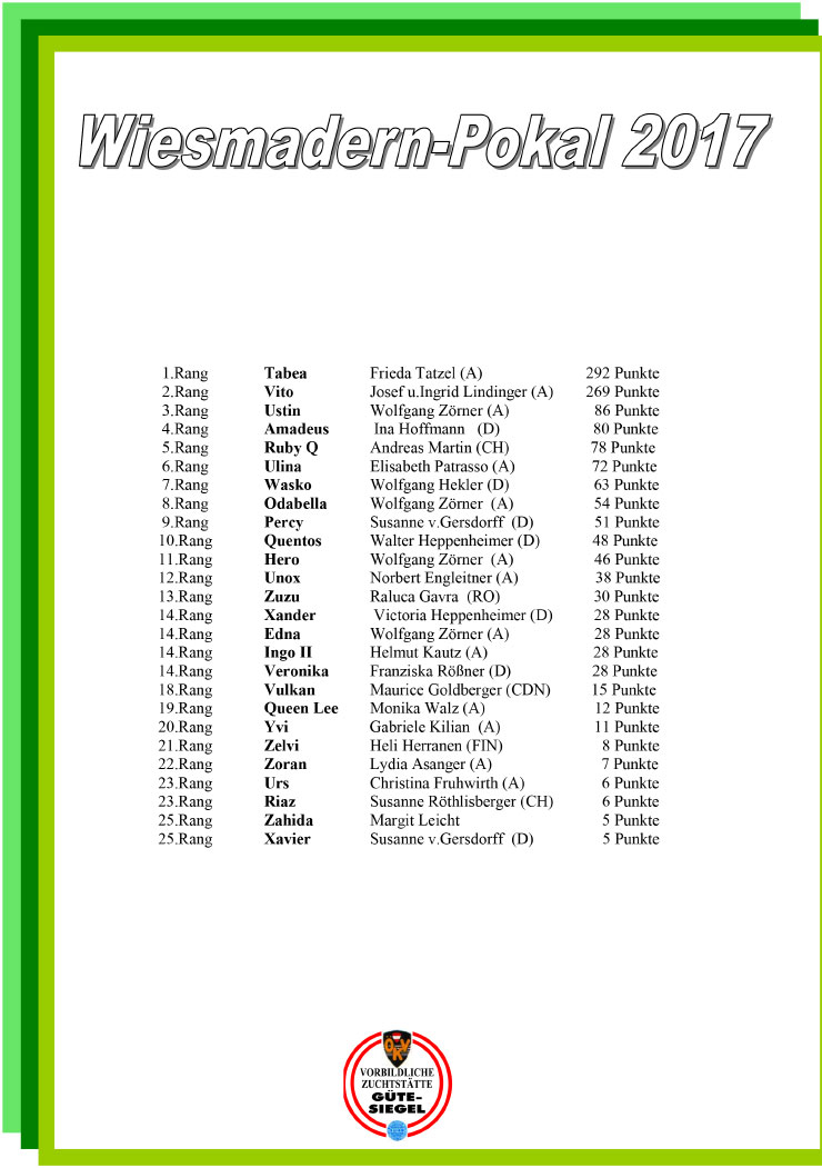 Beim Leistungs-Cup 2017 des SVÖ-Rohrbach-Berg waren Vito (Rang 3), Tabea (Rang 4),Ustin (Rang 9), Wasko (Rang 10) und Ulina (Rang 16) erfolgreich.