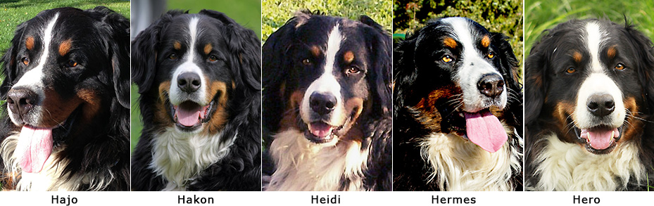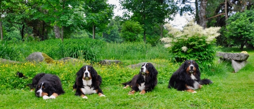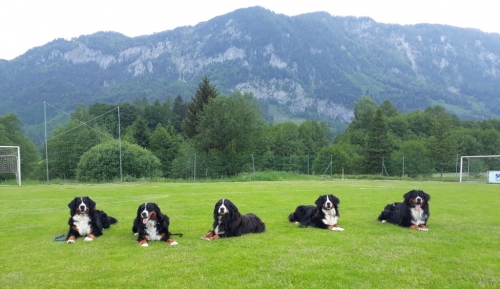 An seinem 5. Geburtstag hat Urs seine erste Rettungshundeprüfung bestanden und dabei Muter und Geschwister getroffen: v.l.n.r. Urs, Ulina, Gina, Ustin.