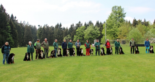 Teilnehmer und Gäste mit Wiesmadern-Hunden bei der Frühjahrs-Ausbildungswoche: